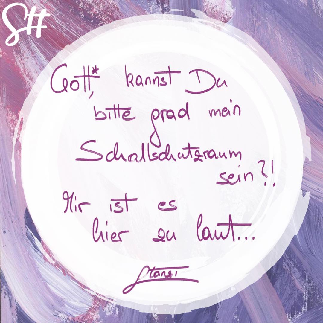 Wenn mir die Menschen zu laut und zu nah sind, mich jede Berührung, jedes Geräusch und sogar ein Geruch schon stresst, dann bitte, Gott*, pack mich in Schaumstoff, wie in einem Tonstudio. Damit alles ein bissi gedämpft wird bevor es zu mir kommt.