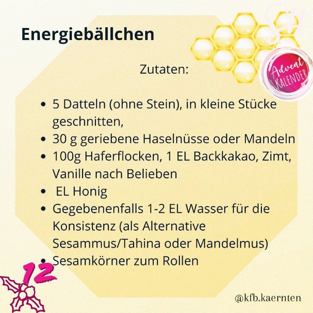 Freundliche Worte Community Adventkalender kommt heute vom @kfb.kaernten mit Gedanken und einem feinen Rezept Teilen: Klicken, um auf WhatsApp zu teilen (Wird in neuem Fenster geöffnet) WhatsApp Klicken, um einem Freund einen Link per E-Mail zu senden (Wird in neuem Fenster geöffnet) E-Mail Klicke, um auf X zu teilen (Wird in neuem Fenster geöffnet) X Klick, um auf Facebook zu teilen (Wird in neuem Fenster geöffnet) Facebook