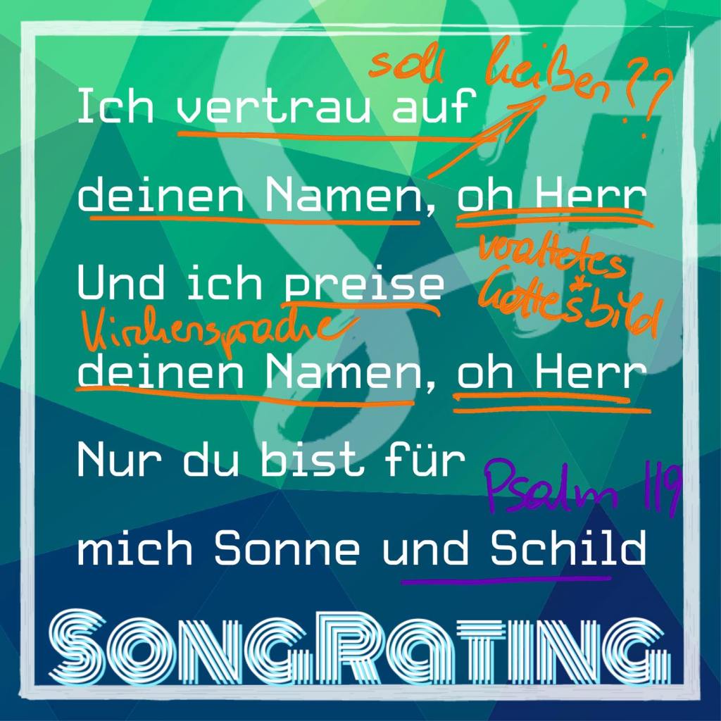 Wie bei vielen Psalmen ist der Text ganz einfach fassbar und hat schöne Sprachbilder die direkt ins Herz fallen. Allerdings ist trotz der modernen Komposition dann doch eine eher verstaubte Ausdrucksweise gewählt worden. Worte wie „preisen“ und Konzepte wie „Gnade“ oder „ich vertrau auf deinen Namen“ sind ohne kirchliche Sozialisierung schwer zu fassen und bedürfen daher einem kirchenerprobten Publikum.